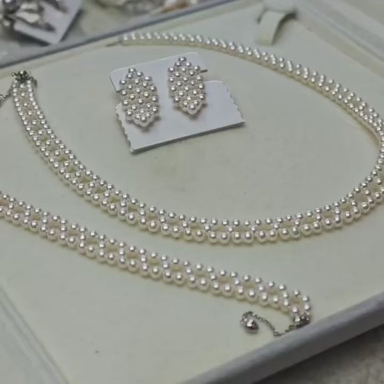 Handcrafted Bridal Pearl Jewelry Set – Custom Choker, Bracelet & Earrings | Adjustable Free Size Fitting