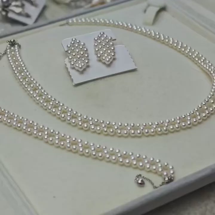 Grace your wedding day with timeless elegance. This handcrafted pearl bridal set features a delicate choker, matching bracelet, and earrings, all customizable to your perfect fit. With free size adjustments, it’s designed to move with you and shine with you on your most unforgettable day.