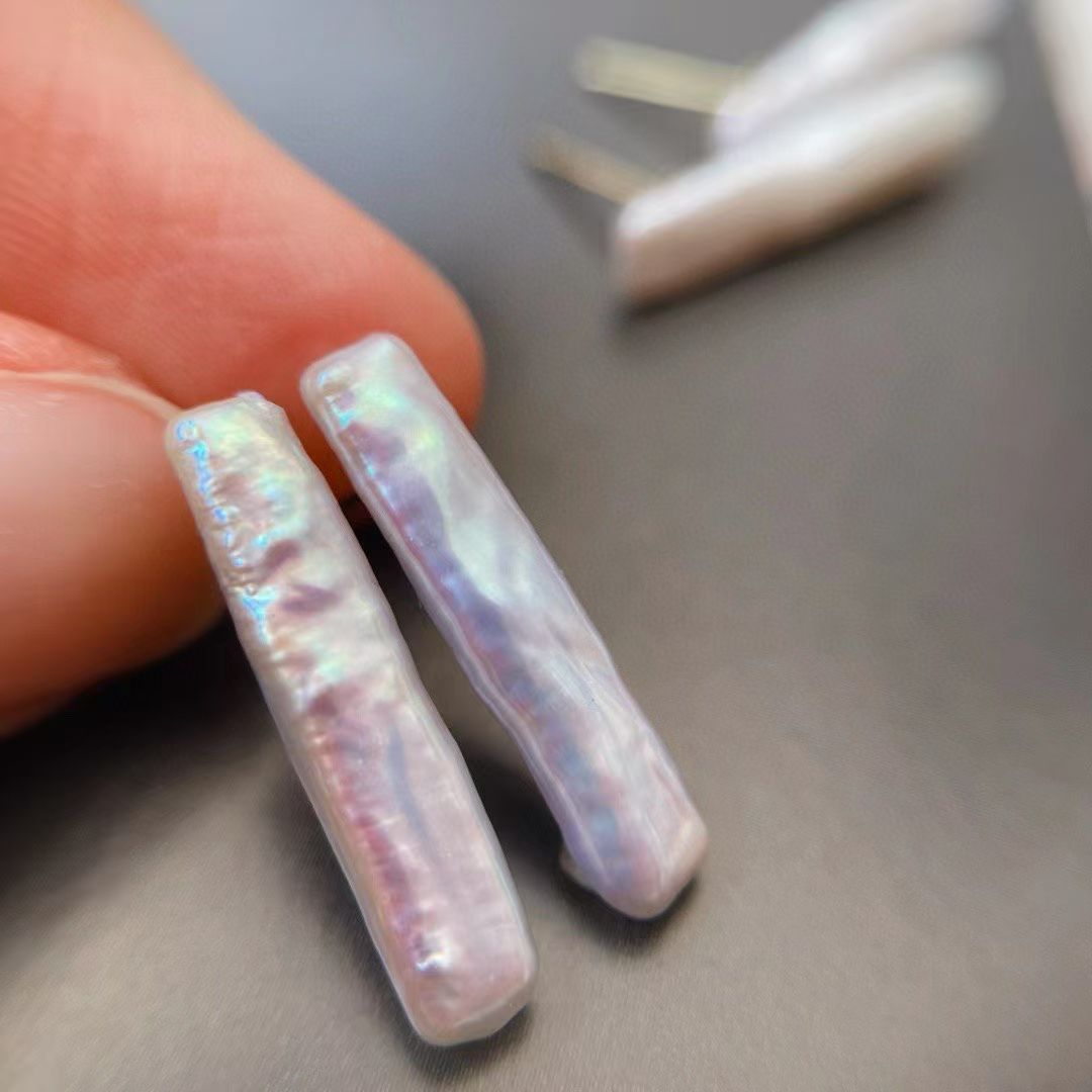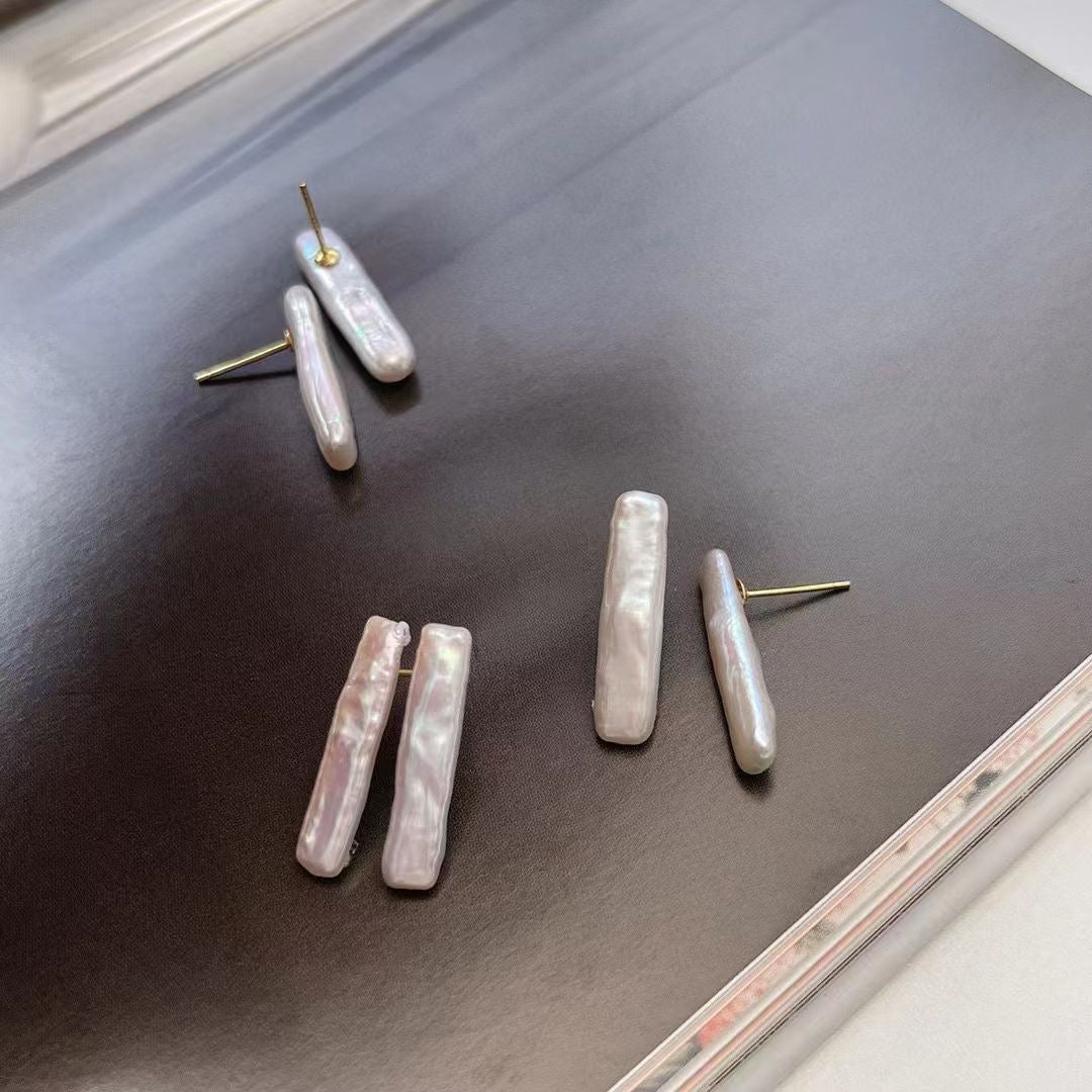 Natural Baroque Pearl Silver Bar Stud Earrings – Each One Unique